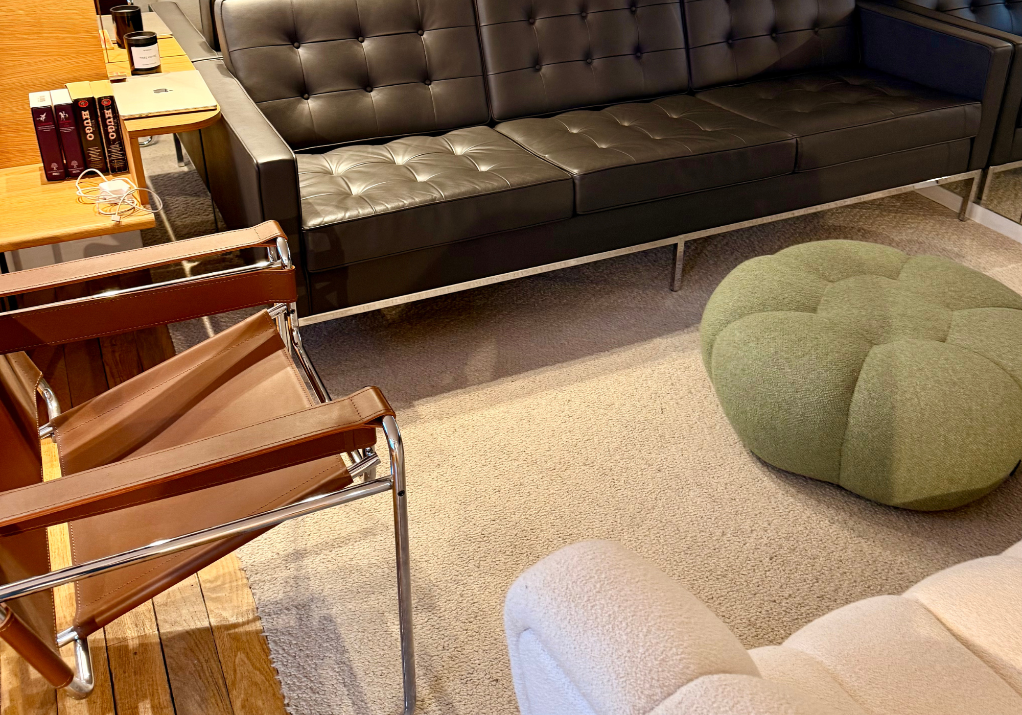 À l’étage, un salon plus confidentiel, propice aux discussions, aux remerciements ou aux moments choisis.